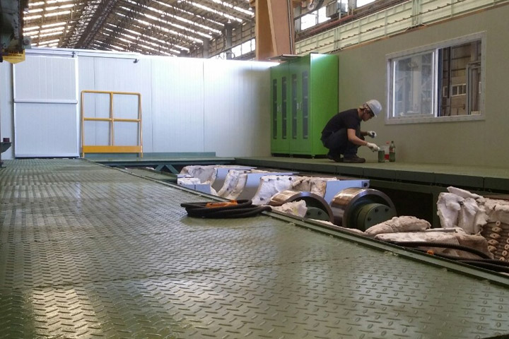 Welding Station 안정적인 용접을 위해 room을 만들고 내부에 turning roller 및 기타 장비를 일체형으로 제작한 작업장8MW-15ML-5.0MH, 사용 하중 50ton